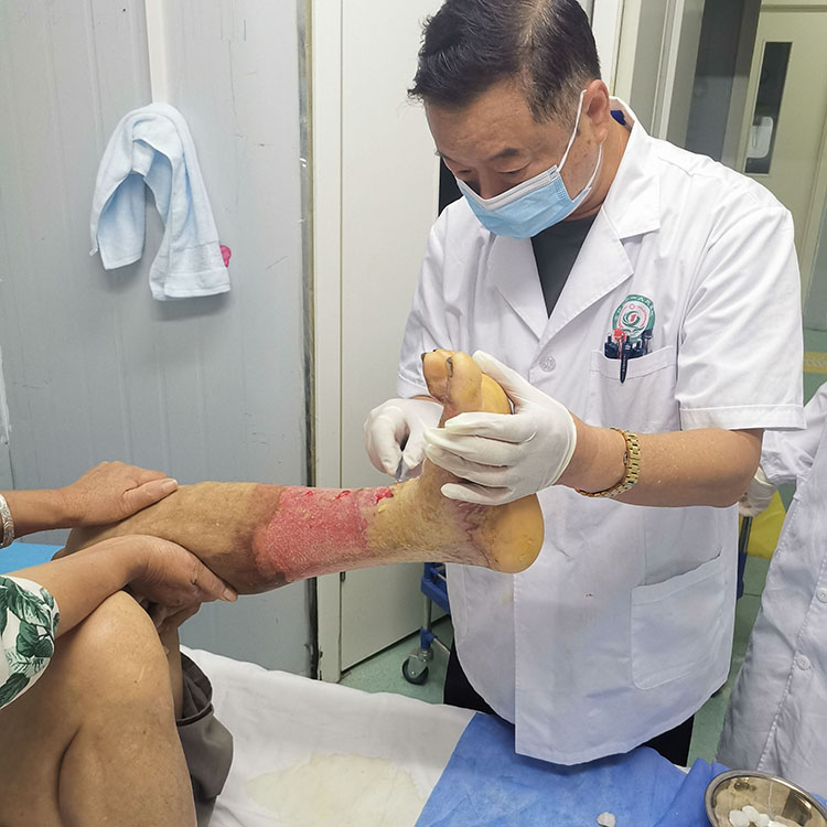 2024年7月17日,《中國燒傷創(chuàng)瘍雜志》編委、燒傷創(chuàng)瘍再生醫(yī)療技術臨床專家張強教授應邀來到淮南新華醫(yī)療集團北方醫(yī)院,對該院的一例左足糖尿病潰瘍合并燙傷和一例長期臥床導致臀部壓瘡患者進行了會診,張主任進行了燙傷創(chuàng)面進行無損性皰皮清除后創(chuàng)面再生醫(yī)療技術規(guī)范換藥以及壓瘡深層腔隙和潛行創(chuàng)面換藥注意事項進行講解并示范換藥,受到醫(yī)患雙方的一致好評!