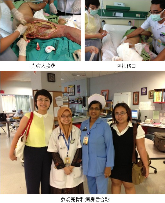 繼續(xù)教育項(xiàng)目開(kāi)始前,我們拜訪了馬來(lái)國(guó)大醫(yī)院((Hospital Universiti Kebangsaan Malaysia)燒傷科主任Dr. Farrah及護(hù)士長(zhǎng),參觀了燒傷科病房,了解了醫(yī)務(wù)人員的學(xué)習(xí)需求,時(shí)逢Dr. Farrah 有一外科病人需要會(huì)診,該病人72歲,女,頭頂部有一腫瘤,切除四天,病理結(jié)果仍需2個(gè)星期,會(huì)診后,決定讓病人使用再生療法,因?yàn)槊缹殶齻嗖皇窃撫t(yī)院的基藥,醫(yī)生不能直接開(kāi)處方,只能病人自己買(mǎi)了拿來(lái)?yè)Q藥,因此,張美艷及Noliza在科室等了病人家屬2個(gè)半小時(shí),成功介紹病人使用美寶燒傷膏!并計(jì)劃跟蹤隨訪該案例!