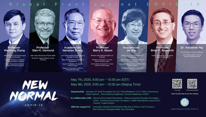中國北京時間5月8日上午9:00(美東時間5月7日晚9點),國家衛(wèi)健委高級別專家組組長、中國工程院鐘南山院士,中國工程院、美國人文與科學(xué)院喬杰院士,上海市新冠肺炎臨床救治專家組組長、復(fù)旦大學(xué)附屬華山醫(yī)院傳染病中心主任張文宏教授,騰訊醫(yī)療副總裁兼醫(yī)療健康事業(yè)部負責(zé)人、世界衛(wèi)生組織數(shù)字衛(wèi)生技術(shù)咨詢小組專家成員吳文達醫(yī)生;美國國家科學(xué)院院士、哈佛大學(xué)公共衛(wèi)生學(xué)院Barry·Bloom教授,耶魯大學(xué)公共衛(wèi)生學(xué)院院長Sten·Vermund教授, 紐約大學(xué)朗格尼醫(yī)學(xué)中心Brian·Bosworth教授等來自中外抗疫一線的重量級專家將圍繞“抗擊COVID-19一線經(jīng)驗與戰(zhàn)略的多邊分享”主題,共議新冠肺炎疫情防控經(jīng)驗與挑戰(zhàn),為全球戰(zhàn)疫出力。