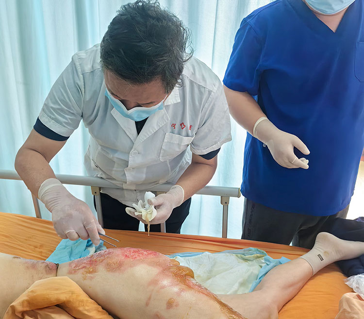 2025年4月24日,《中國燒傷創(chuàng)瘍雜志》編委、燒傷創(chuàng)瘍再生醫(yī)療技術(shù)臨床專家張強(qiáng),應(yīng)邀前往寧國市人民醫(yī)院燒傷科為多例燒傷、褥瘡病人進(jìn)行會診,張主任運(yùn)用再生醫(yī)療技術(shù)為患者進(jìn)行清創(chuàng),講解規(guī)范換藥流程和注意事項(xiàng)。