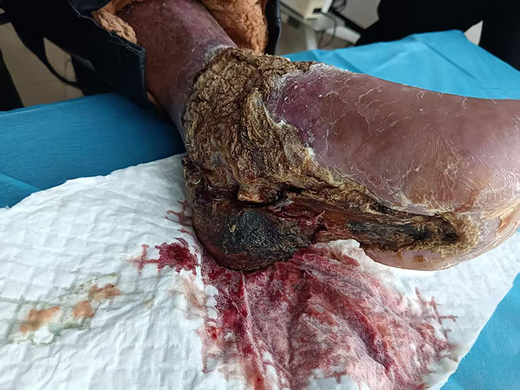 2025年4月25日,《中國燒傷創(chuàng)瘍雜志》常務(wù)編委、燒傷創(chuàng)瘍再生醫(yī)療技術(shù)臨床專家趙瑞慶,到山西上黨區(qū)中醫(yī)院隨訪患者?;颊咭蚪煌ㄊ鹿蕦⒂蚁轮钻P(guān)節(jié)軟組織嚴(yán)重?fù)p傷,曾在長治市某醫(yī)院治療未果,故轉(zhuǎn)回上黨區(qū)中醫(yī)院醫(yī)治,后經(jīng)趙瑞慶教授會診,制定了具體的再生、保足治療方案,經(jīng)過皮膚創(chuàng)面肉芽培養(yǎng),抗骨髓炎治療,分區(qū)域皮膚移植修復(fù),最終在4月2日康復(fù)出院。4月25日隨訪時患者,家屬對治療結(jié)果非常滿意,特別感謝徐榮祥教授教授發(fā)明的再生醫(yī)療技術(shù)保住了他的腳。