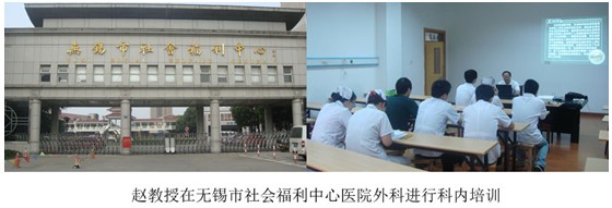【3】7月18日下午趙教授在無錫市社會(huì)福利中心醫(yī)院外科進(jìn)行科內(nèi)培訓(xùn),主題為《再生醫(yī)學(xué)技術(shù)在多科室的臨床運(yùn)用》和《再生醫(yī)學(xué)技術(shù)治療燒傷的規(guī)范操作》,外科主任徐洋主持會(huì)議。