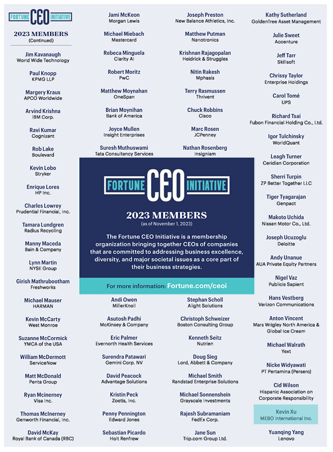 此次位列財富CEO倡議2023年名單還包括米其林、聯(lián)邦快遞、羅素、輝瑞、強生、諾華、聯(lián)想集團(tuán)等500強企業(yè)CEO。