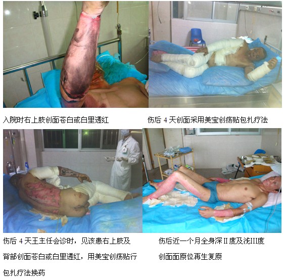 2011年4月11日~12日,廣東省開平市中心醫(yī)院燒傷外一科先后收住1例成人大面積深度燒傷患者和1例小兒大面積燒傷患兒,這2例大面積燒傷患者入院后全程采用燒傷皮膚原位再生復(fù)原技術(shù)治療,2例患者于傷后5天時出現(xiàn)病情危重,該醫(yī)院立即請求中國中西醫(yī)結(jié)合學(xué)會燒傷專業(yè)委員會常委、中國燒傷創(chuàng)瘍雜志社副總編輯、北京燒傷創(chuàng)瘍研究所副所長、臨床部王洪生主任到該醫(yī)院會診,王主任于2011年4月16日下午近17時從菲律賓馬尼拉乘機(jī)到達(dá)廣州白云國際機(jī)場后,不顧長途勞頓直接從機(jī)場于當(dāng)晚趕赴開平市中心醫(yī)院為該院2例大面積燒傷患者會診,對2例大面積燒傷患者的救治工作進(jìn)行指導(dǎo),經(jīng)過該醫(yī)院燒傷外科醫(yī)護(hù)人員對2例大面積燒傷患者近1個月的精心治療和王洪生主任及時、正確的會診指導(dǎo),該醫(yī)院利用燒傷皮膚原位再生復(fù)原技術(shù)使這2例大面積燒傷患者得到了成功治救治,具體如下: