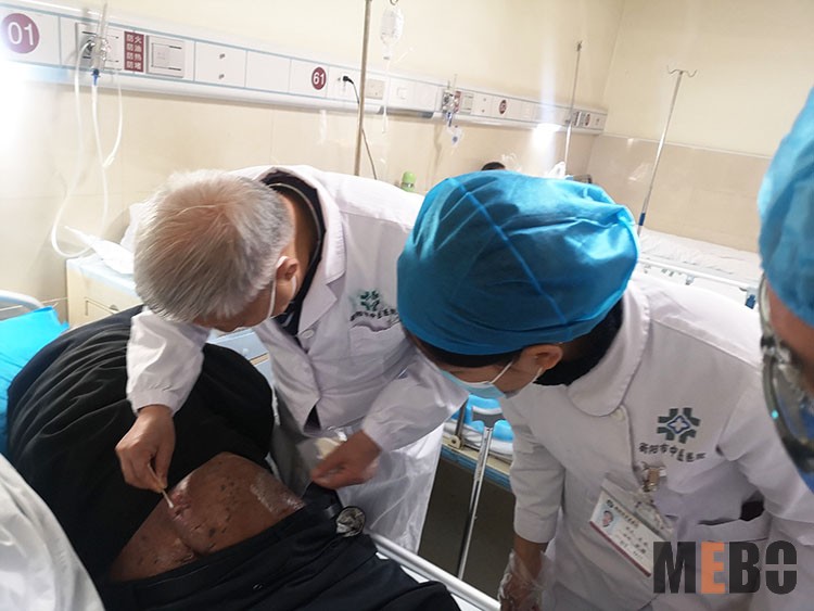 11月22日,應(yīng)衡陽(yáng)市中醫(yī)醫(yī)院何主任邀請(qǐng),北京榮祥再生醫(yī)學(xué)研究所副所長(zhǎng)、《中國(guó)燒傷創(chuàng)瘍雜志》編委金黨軍來(lái)到醫(yī)院會(huì)診一例壓瘡患者,并親自為患者換藥,向在場(chǎng)的醫(yī)護(hù)人員強(qiáng)調(diào)再生醫(yī)療技術(shù)換藥的注意事項(xiàng),得到了醫(yī)護(hù)人員和患者家屬的一致好評(píng)。衡陽(yáng)市中醫(yī)醫(yī)院積極推廣和使用再生醫(yī)療技術(shù),救治了大量燒傷慢創(chuàng)患者,成為了再生醫(yī)療技術(shù)在衡陽(yáng)地區(qū)的臨床學(xué)術(shù)新中心。