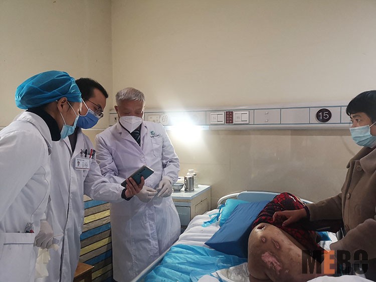 11月25日,因疫情防控,享受?chē)?guó)務(wù)院特殊津貼專(zhuān)家、中國(guó)中西醫(yī)結(jié)合燒傷專(zhuān)業(yè)委員會(huì)顧問(wèn)、中國(guó)研究型醫(yī)院學(xué)會(huì)創(chuàng)面防治與損傷組織修復(fù)專(zhuān)業(yè)委員會(huì)委員、中國(guó)中西醫(yī)結(jié)合學(xué)會(huì)再生醫(yī)療技術(shù)委員會(huì)創(chuàng)瘍學(xué)組首席專(zhuān)家、《中國(guó)燒傷創(chuàng)瘍雜志》常務(wù)編委、成都市郫都區(qū)人民醫(yī)院燒傷創(chuàng)瘍科學(xué)術(shù)帶頭人付子俊教授應(yīng)黔南州甕安縣中醫(yī)院邀請(qǐng),對(duì)一名頭面部,手部燒傷病人進(jìn)行遠(yuǎn)程視頻會(huì)診,提出治療方案并指導(dǎo)清創(chuàng)換藥。