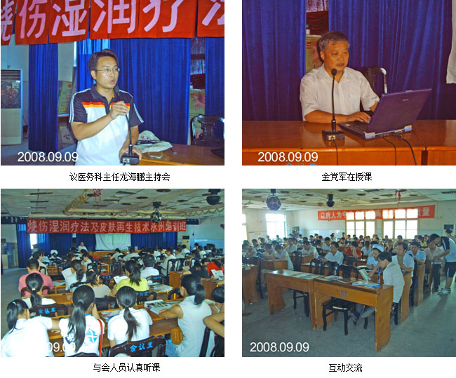 2008年9月9日下午2點30分,由永州市中醫(yī)院承辦的《燒傷再生醫(yī)療技術(shù)診療與護理學習班》在湖南永州市舉行,永州市多家各級醫(yī)療單位的150多名科主任、相關(guān)專業(yè)的學科帶頭人、專家和業(yè)務(wù)骨干參加了學習班。學習班開始前,舉行了簡短的開幕式,由永州市人民醫(yī)院醫(yī)務(wù)科主任龍海鵬主持,并代表院領(lǐng)導致賀詞。