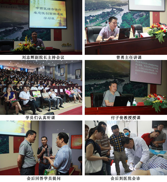 都江堰市中醫(yī)院劉志輝副院長總結(jié)會議,宣布學(xué)習(xí)班圓滿結(jié)束。會議結(jié)束后很多學(xué)員們圍繞著付子俊教授不斷請教問題,付教授一一詳細(xì)解答。都江堰市405醫(yī)院石剛院長則迫不及待的申請付教授立即到該院會診一創(chuàng)面難愈性患者,付子俊教授不顧講課疲憊,在石院長和醫(yī)護人員陪同下立即到該院會診了患者,并認(rèn)真制定了治療方案。
