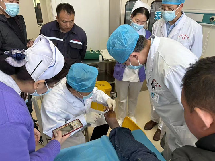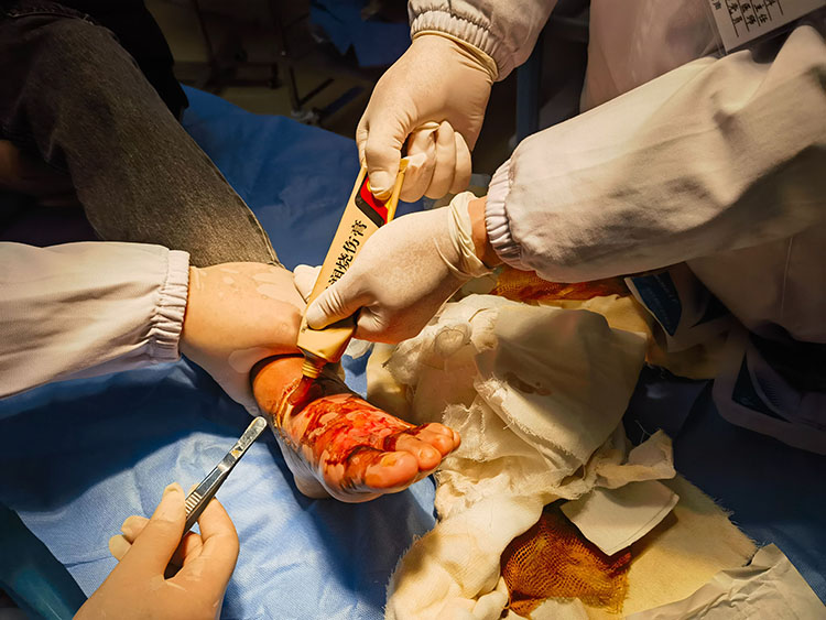 2025年1月6日,《中國燒傷創(chuàng)瘍雜志》編委、燒傷創(chuàng)瘍再生醫(yī)療技術(shù)臨床專家張強,應邀來到潛山市立醫(yī)院,對整形外科收治的4例慢創(chuàng)患者進行會診并進行再生醫(yī)療技術(shù)規(guī)范換藥示范,還對患者后期的檢查、治療提出指導性意見,受到醫(yī)患雙方的一致好評!