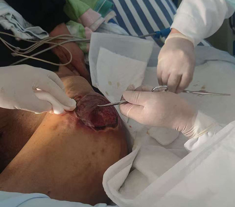 2025年1月13日,《中國燒傷創(chuàng)瘍雜志》編委、燒傷創(chuàng)瘍再生醫(yī)療技術(shù)臨床專家張強,應邀來到中國人民解放軍聯(lián)勤保障部隊九九一醫(yī)院燒傷整形科,為一位壓瘡患者進行會診治療,張教授親自示范為患者進行清創(chuàng)換藥處理,指導醫(yī)生規(guī)范應用再生醫(yī)療技術(shù)進行創(chuàng)面換藥治療,并針對臨床中遇到的問題進行了講解,得到了科室醫(yī)生的高度認可,患者家屬對張教授頂著炎熱親臨會診表示感謝!