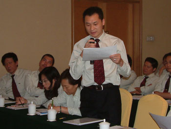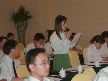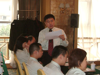 下午大會(huì)首先由肖摩董事宣讀了董事局下達(dá)的“全力出擊”決策要令,然后由副主裁孫霞宣讀市場(chǎng)“全力出擊”實(shí)施方案,方案針對(duì)董事局的決策要令對(duì)一下步的市場(chǎng)工作進(jìn)行了具體安排,從銷售回款、財(cái)流物流、推廣宣傳、醫(yī)療開發(fā)、人力資源等各方面都進(jìn)行了詳細(xì)部署,在宣傳過程中,楊總對(duì)方案逐條予以解釋說明。然后大家對(duì)實(shí)施方案發(fā)表自己的見解,對(duì)市場(chǎng)上出現(xiàn)的一些問題進(jìn)行了熱烈的討論,楊總針對(duì)突出的問題進(jìn)行了解答并提出了相應(yīng)的解決方案。