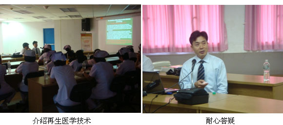 3月1日,我們應邀前往位于曼谷市大型私立醫(yī)院Ramkumhang Hospital進行全新的醫(yī)療開發(fā)工作。聽課醫(yī)生分別來自外科,內科及整形外科,王洪生主任以再生醫(yī)療技術的臨床應用為主題,生動地向聽課人員展示了再生醫(yī)學在燒傷、創(chuàng)瘍等多領域的臨床應用,圖文并茂,醫(yī)生們認真聽講,對MEBT/MEBO興趣較大。會后兩名重點醫(yī)生跟王主任就微粒皮種植術進行進一步交流,王主任針對問題都給與了耐心而專業(yè)的解答。