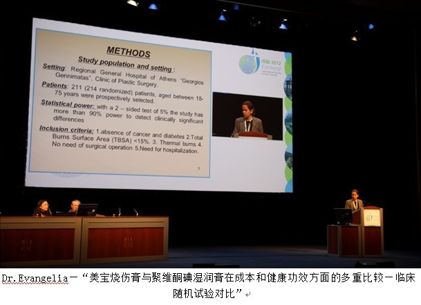 最后壓軸出場的是來自希臘的燒傷治療專家Dr.Evangelia Tsati,她以“Comparing cost and multiple health outcomes between oil baded ointment and povidone iodine plaus moisturizing cream under different aspects: A pragmatic Randdomized Trial”為題介紹自己參與的在希臘進行的多中心臨床對比試驗,演講包含了大量的對比數(shù)據(jù)和科學論證,從治愈時間、治療便捷性、病人痛苦程度、治療費用等多個方面進行了詳細的對比闡述,結(jié)果顯示美寶在病人愈合時間、住院時間以及整體花費上全部優(yōu)于對照組!由于時間問題,她沒法答疑,但是會后作為唯一的女性演講者,她獲得了所有專題會聽眾最高的評價—“科學和完美的演講”!