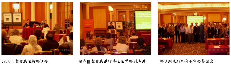 二、2009年10月15日晚上9時(shí),在迪拜市成功舉辦了燒傷創(chuàng)瘍再生醫(yī)學(xué)治療新進(jìn)展培訓(xùn)班,參加培訓(xùn)班的有來自迪拜市各主要醫(yī)院的燒傷、整形、普外、創(chuàng)傷、急診、皮膚和婦產(chǎn)科的主任和骨干醫(yī)師,共計(jì)50余人。培訓(xùn)班由阿聯(lián)酋醫(yī)師學(xué)會和燒傷整形學(xué)會主席、迪拜醫(yī)學(xué)院碩士研究生導(dǎo)師Dr.Ali教授主持,會議持續(xù)了2個(gè)多小時(shí),培訓(xùn)活動(dòng)很成功,會場氣氛非常熱烈。