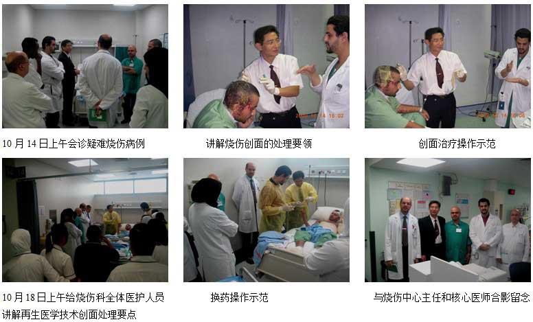 三、2009年10月14日下午和18日上午,陳永翀先后2次應(yīng)邀到迪拜最大的醫(yī)院Dubai Rashid Hospital的燒傷創(chuàng)傷中心(該中心是阿聯(lián)酋最大的創(chuàng)傷救治中心),會診指導(dǎo)燒傷患者的治療和示范燒傷再生醫(yī)學(xué)技術(shù)的規(guī)范創(chuàng)面處理技術(shù),通過會診、病例討論和操作示范,使燒傷中心的醫(yī)師、護(hù)士更全面的掌握燒傷再生醫(yī)學(xué)技術(shù),收效顯著,效果很好。