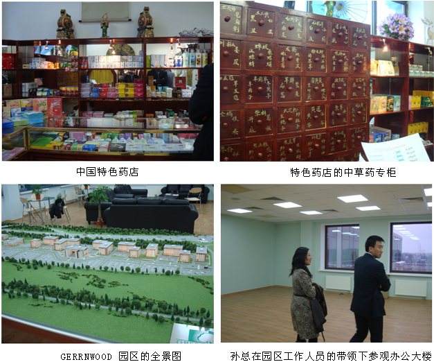 會談之后,孫總一行參觀了具有中國特色的藥店、GREENWOOD園區(qū)等。在園區(qū)內(nèi),考察了多個項目場所,基本確定了俄美寶公司的辦公選址、公司初建等意向。有政府背景的高科技的國際化園區(qū)為美寶初期公司的建立提供了安全、可靠的保證。