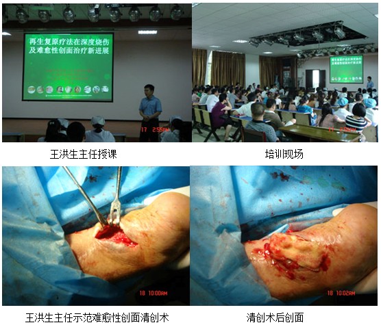 當(dāng)日下午三點,由該院外科蘇主任致歡迎辭并宣布培訓(xùn)開始,由王洪生主任以“再生復(fù)原療法在深度燒傷及難愈合創(chuàng)面治療新進(jìn)展”為題做了專題講座,來自該院各科室100余名醫(yī)護(hù)人員參加了此次培訓(xùn),王洪生主任在介紹我國著名生命科學(xué)家、醫(yī)學(xué)家徐榮祥教授近年來在人體再生復(fù)原科學(xué)領(lǐng)域取得的重大臨床與實驗研究成果后,從再生醫(yī)學(xué)的理論到該技術(shù)治療燒傷、褥瘡、糖尿病足、各種難愈合創(chuàng)面、疤痕防治及各科室運(yùn)用的臨床治療規(guī)范做了詳細(xì)的講解,參會人員均被再生醫(yī)學(xué)神奇的治療效果所震驚。