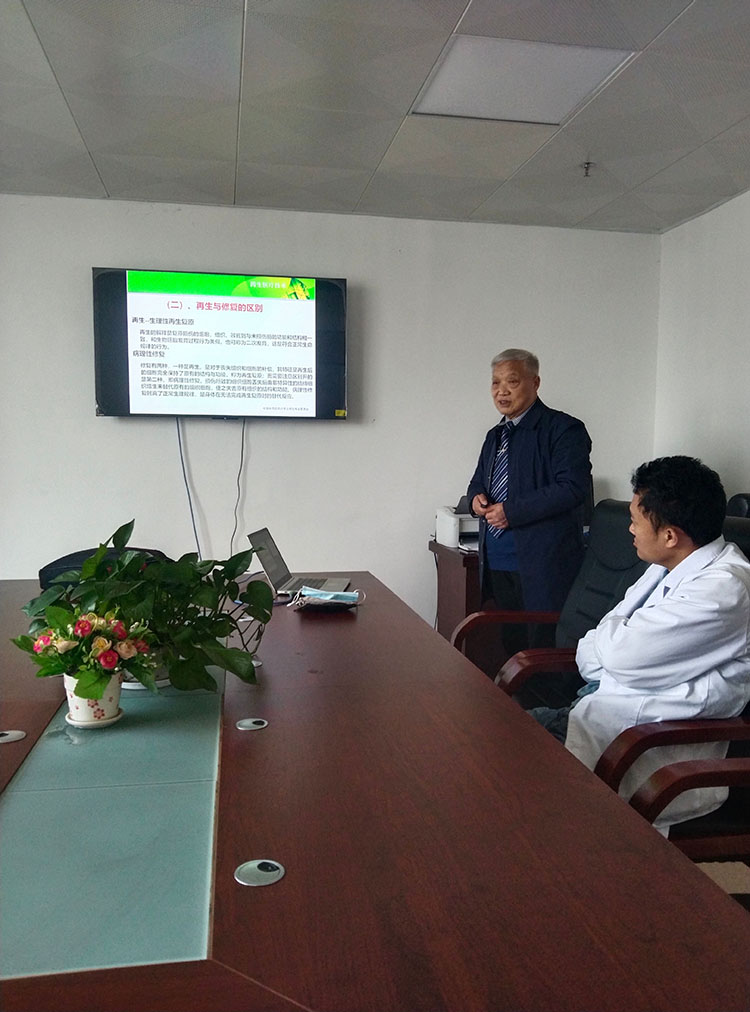 3月18日,應(yīng)盤(pán)錦市騰氏骨科醫(yī)院騰院長(zhǎng)邀請(qǐng),中國(guó)中醫(yī)藥高等教育學(xué)會(huì)臨床教育研究會(huì)肛腸分會(huì)常務(wù)理事、北京中西醫(yī)結(jié)合學(xué)會(huì)燒傷專(zhuān)業(yè)委員會(huì)副主任委員、北京中醫(yī)藥學(xué)會(huì)肛腸專(zhuān)業(yè)委員會(huì)委員、《中國(guó)燒傷創(chuàng)瘍雜志》常務(wù)編委張勇,針對(duì)再生醫(yī)療技術(shù)在燒傷、糖足、褥瘡、壓瘡等難愈合創(chuàng)面作了經(jīng)驗(yàn)分享,20余人參會(huì),大家對(duì)再生醫(yī)療技術(shù)表示認(rèn)可,會(huì)后共同就一些臨床問(wèn)題開(kāi)展了熱烈的討論。