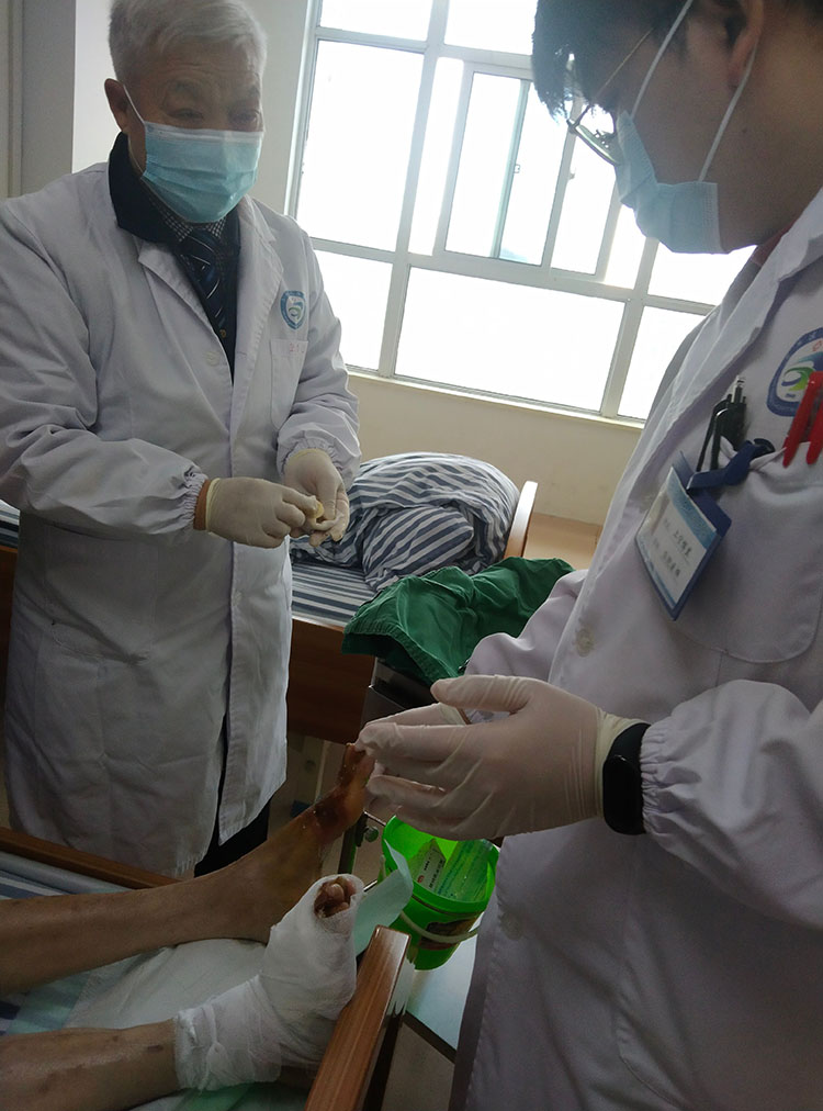 3月25日,應(yīng)湖北省孝感市云夢(mèng)縣人民醫(yī)院內(nèi)分泌科彭曉群護(hù)士長(zhǎng)邀請(qǐng),《中國(guó)燒傷創(chuàng)瘍雜志》編委、燒傷創(chuàng)瘍?cè)偕t(yī)療技術(shù)臨床專(zhuān)家張強(qiáng),到該院會(huì)診病人,對(duì)三例糖尿病足患者運(yùn)用再生醫(yī)療技術(shù)處理創(chuàng)面給予細(xì)節(jié)講解,此次活動(dòng)受到大家贊賞。