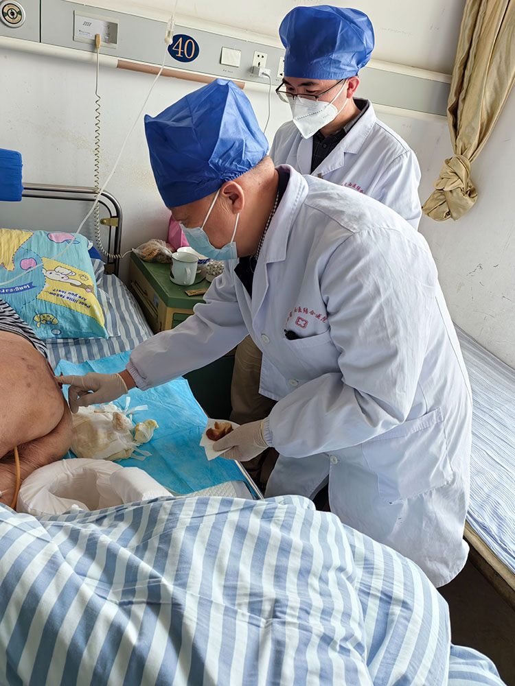 2024年3月21日,應(yīng)江西省中西醫(yī)結(jié)合醫(yī)院血管外科馮主任和肛腸科封主任邀請(qǐng),《中國(guó)燒傷創(chuàng)瘍雜志》編委、燒傷創(chuàng)瘍?cè)偕t(yī)療技術(shù)臨床專(zhuān)家金黨軍,來(lái)到該院進(jìn)行了學(xué)術(shù)交流,并會(huì)診了兩例壓瘡患者,深受科室醫(yī)護(hù)人員好評(píng)。