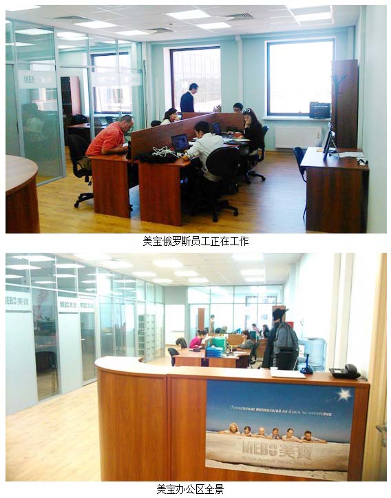 美寶俄羅斯分公司坐落在格林伍德國貿(mào)中心的核心區(qū)——17號(hào)商務(wù)辦公樓,租用建筑面積203平米,根據(jù)業(yè)務(wù)需求內(nèi)部布局分為接待溝通區(qū)、公共辦公區(qū)、會(huì)議培訓(xùn)區(qū)、經(jīng)理室、財(cái)務(wù)室、周轉(zhuǎn)庫等幾部分。分公司籌備組迅速開展各項(xiàng)準(zhǔn)備工作,落實(shí)公司注冊(cè)、招聘培訓(xùn)本地員工,按項(xiàng)目進(jìn)度完成了從設(shè)計(jì)裝修、家具采購、到布線安裝、設(shè)備調(diào)試等一系列營運(yùn)準(zhǔn)備工作,大家親自動(dòng)手布置裝飾辦公室,即節(jié)省了費(fèi)用又促進(jìn)了溝通,將美寶再生復(fù)原科學(xué)的旗幟插到了莫斯科。