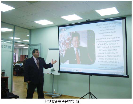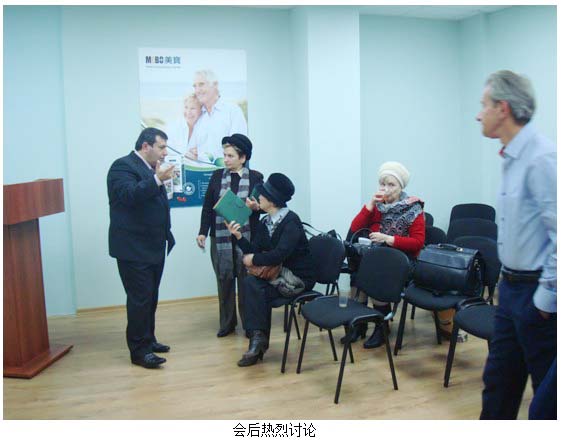 11月20日國際市場集團(tuán)總裁班子委員, 市場部總經(jīng)理劉鋼專程來莫斯科了解指導(dǎo)市場開發(fā)工作,并協(xié)調(diào)解決產(chǎn)品物流問題。借總部領(lǐng)導(dǎo)來臨的東風(fēng),分公司一周內(nèi)舉辦了兩場小型公司招商說明會(huì),宣講美寶公司的歷史和發(fā)展,人體原位再生復(fù)原科學(xué)技術(shù)和產(chǎn)品應(yīng)用,美寶直銷業(yè)務(wù)帶來的健康財(cái)富機(jī)會(huì),一些參會(huì)人對(duì)美寶再生科學(xué)和產(chǎn)品的神奇效果所震驚,在會(huì)后就直接報(bào)單購買加入美寶。