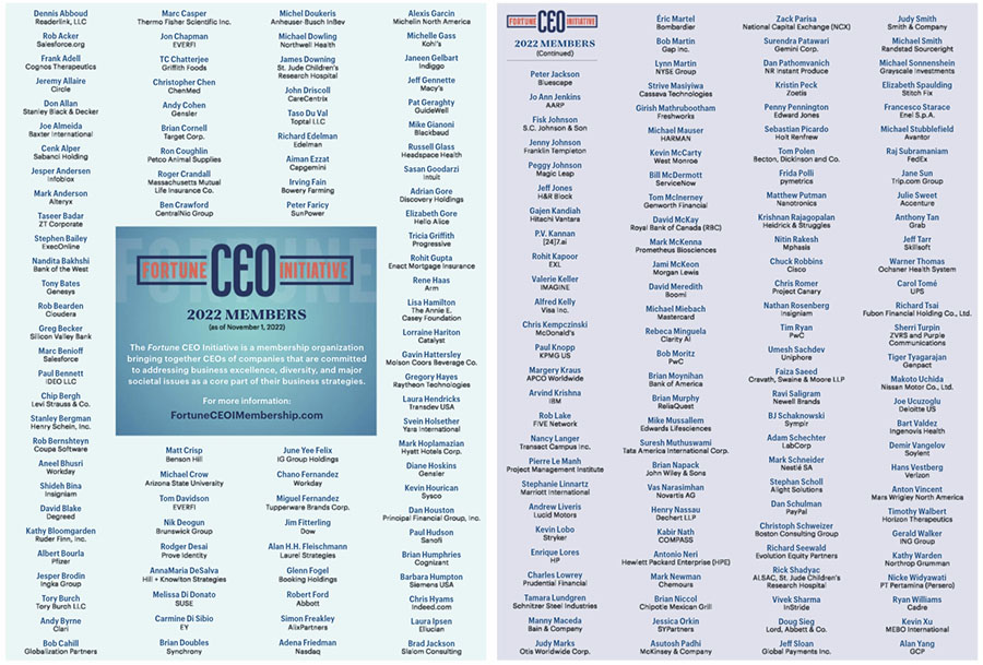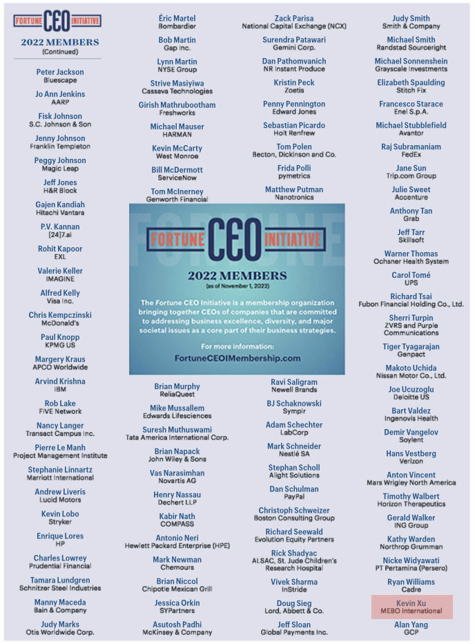 此次位列財富CEO倡議2022年名單還包括米其林、梅西百貨、塔塔、聯邦快遞、羅素、輝瑞、強生、諾華等500強企業(yè)CEO。