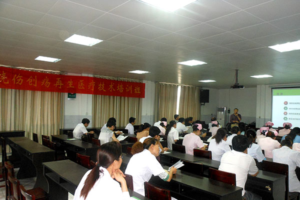 2015年6月16日,應鐘祥市柴湖鎮(zhèn)中心衛(wèi)生院張院長的邀請,中國中西醫(yī)結合學會燒傷專業(yè)委員會常委、《中國燒傷創(chuàng)瘍雜志》常務編委金黨軍教授,對全院醫(yī)護人員進行了“燒傷創(chuàng)瘍再生醫(yī)療技術臨床應用”的培訓。