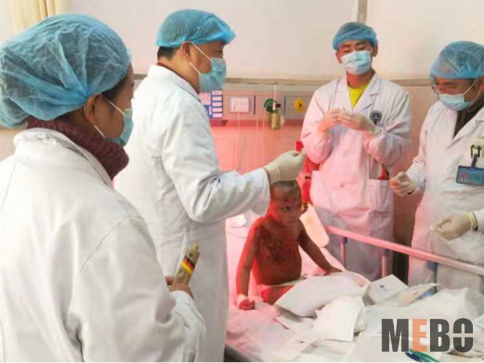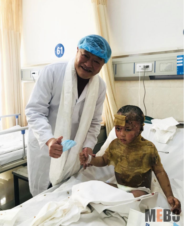 為了更好的配合付教授換藥,嘎登小朋友一直保持固定姿勢(shì),一動(dòng)不動(dòng)。在給小嘎登換藥的過程中,小嘎登全程沒有喊痛、沒有留一滴眼淚。為了表示對(duì)付教授的感謝,嘎登小朋友還給付教授豎起了大拇指,為付教授及再生醫(yī)療技術(shù)點(diǎn)贊。