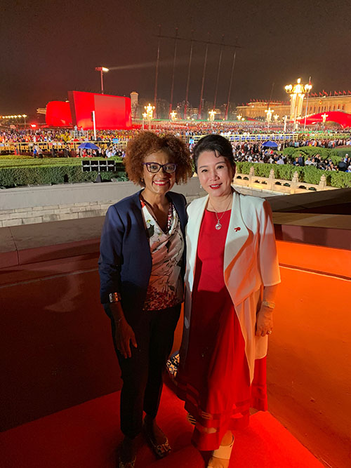聯(lián)歡現(xiàn)場李俐(右)與瑪亞姆·薩利姆(左)相遇,她的父親坦桑尼亞前總理薩利姆·艾哈邁德·薩利姆是此次“友誼勛章”的獲得者。