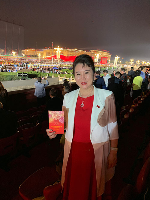 2019年10月1日,美寶集團(tuán)董事局李俐在天安門廣場親歷了一場必將載入史冊的國家盛典,激動(dòng)之情尚在心頭縈繞、久久不能平復(fù)之際,又于晚上8點(diǎn)出席了在天安門廣場舉行的繽紛璀璨的慶祝中華人民共和國成立70周年聯(lián)歡活動(dòng)。習(xí)近平等黨和國家領(lǐng)導(dǎo)人同各界群眾歡度國慶之夜,共賞這一空前盛大的慶典。