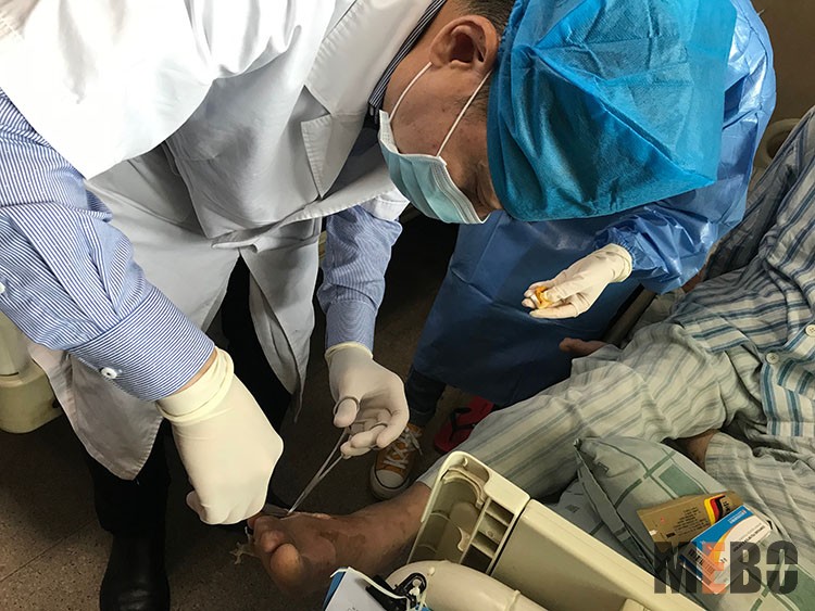 10月28日,北京榮祥再生醫(yī)學研究所副所長、中國中西醫(yī)結合學會燒傷專業(yè)委員會常務委員、《燒傷創(chuàng)瘍雜志》副總編輯、應用燒傷創(chuàng)瘍再生醫(yī)療技術治療糖尿病足領域專家、研究員王洪生教授應邀來到佛山市南海區(qū)人民醫(yī)院燒傷整形科會診一例40%燒傷患者,并應邀指導該科8例燒傷、糖足、大壓瘡患者換藥,臨床幫帶效果明顯。