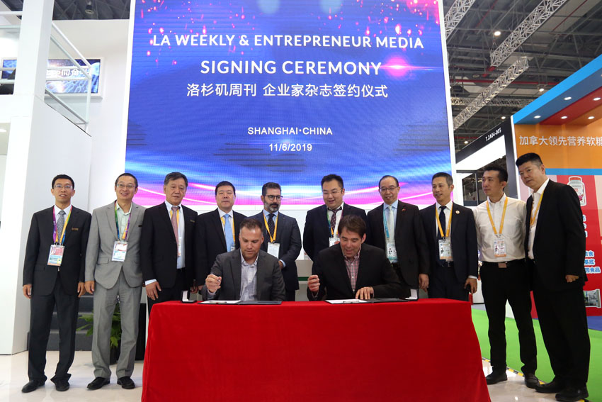 就在今天,美寶見證并迎來了進(jìn)博會(huì)首個(gè)簽約。上午10點(diǎn)30分,美寶集團(tuán)戰(zhàn)略合作伙伴L(zhǎng)A Weekly(《洛杉磯周刊》)與Entrepreneur Media(美國(guó)《企業(yè)家》)在美寶集團(tuán)展臺(tái)簽約,雙方將建立新的伙伴關(guān)系,并在全球范圍內(nèi)開展創(chuàng)造性的系列活動(dòng)。美寶集團(tuán)董事局主席徐鵬、美寶集團(tuán)總裁楊智斌,美寶集團(tuán)副總裁劉鋼、商慶新,美寶美國(guó)環(huán)球集團(tuán)COO盧偉熙及加州部分代表在現(xiàn)場(chǎng)見證了此次簽約,并將在雙方的伙伴關(guān)系中起到更好的鏈接與深化作用。