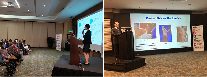 培訓的議題主要分為兩大部分:一、再生醫(yī)療技術的全球發(fā)展,二、再生醫(yī)療技術在拉美地區(qū)的現(xiàn)階段發(fā)展。培訓伊始,首先由國際再生醫(yī)學與創(chuàng)面修復學會北京辦公室主任徐巍巍進行演講。她首先系統(tǒng)地介紹了再生醫(yī)療技術的發(fā)展歷史及諸項專利,為參會者展現(xiàn)出再生醫(yī)療技術的強大科研背景與科學實力。接著,她又著重分析了再生醫(yī)療技術在提供生理性濕潤環(huán)境、緩解疼痛、控制炎癥、預防感染、改善瘢痕、液化壞死組織及促進皮膚原位再生等方面的作用機制,清晰的梳理了再生醫(yī)療技術在創(chuàng)面治療領域的巨大優(yōu)勢。最后,她分享了近年來在全球開展的多項最新臨床研究結果,以及多個復雜病例的分享,直觀地呈現(xiàn)出再生醫(yī)療技術的顯著治療效果。