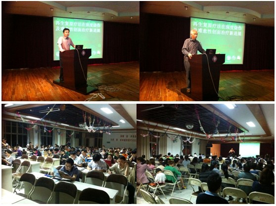 下午的學(xué)術(shù)講座由該院副院長謝漢剛主持,其中外科主任黃林新、骨科主任施春帆等院方領(lǐng)導(dǎo)也列席聽講。專題學(xué)術(shù)講座中,王主任首先向與會(huì)的專家介紹了著名生命科學(xué)家、醫(yī)學(xué)家、人體再生復(fù)原科學(xué)的創(chuàng)立者、再生復(fù)原療法的發(fā)明人徐榮祥教授近年來在再生醫(yī)學(xué)領(lǐng)域所取得的重大實(shí)驗(yàn)及臨床研究成果,而后王主任結(jié)合了大量的臨床病例圖片及錄像資料,向醫(yī)生們介紹了燒傷濕潤暴露療法,闡述了燒傷皮膚原位再生醫(yī)療技術(shù)原理,與傳統(tǒng)醫(yī)學(xué)療法相比再生醫(yī)療技術(shù)的優(yōu)越性等;著重講解了暴露療法、半暴露療法和包扎療法的操作方法及要點(diǎn);通過臨床病例圖片側(cè)重分析褥瘡、典型糖尿病足、下肢潰瘍等外科常見創(chuàng)傷治療前后過程。重點(diǎn)講述了再生療法在各種難愈性創(chuàng)面治療新進(jìn)展的情況。最后還通過視頻講述了微粒皮種植技術(shù)的臨床操作。各種創(chuàng)面治療后理想的愈合效果讓醫(yī)生們對再生醫(yī)療技術(shù)有了更深刻的認(rèn)識,得到了在場領(lǐng)導(dǎo)及大家的認(rèn)可。