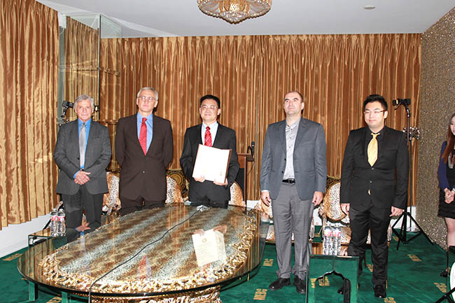 徐教授對不遠(yuǎn)千里來到洛杉磯參加頒獎典禮的該協(xié)會的成員Mosny和Pancurak先生表示了衷心的感謝,徐教授表示對于獲得2013國際“Golden  Biatec”獎深感榮幸,這個(gè)獎項(xiàng)的獲得不僅代表著該協(xié)會更代表著所有曾經(jīng)支持和一直支持著再生科學(xué)的各界人士的深切希望與深遠(yuǎn)信任。