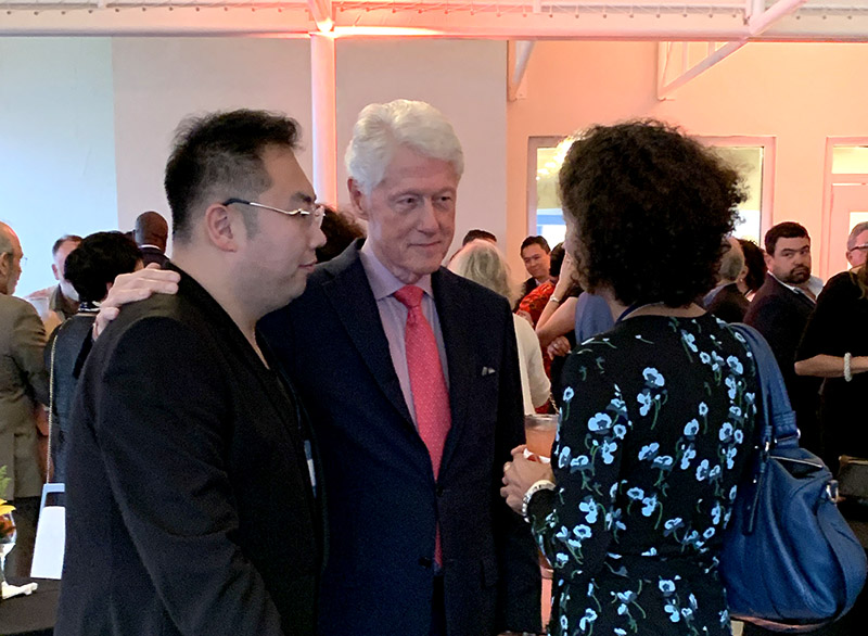 在貴賓招待會上徐鵬主席與克林頓總統(tǒng)就克林頓基金會的全球倡議項目及美寶倡議的最新狀況進(jìn)行了深度交流,對于中國境內(nèi)年初爆發(fā)的新冠病毒疫情也交流了意見。徐鵬表示美寶集團(tuán)針對新冠疫情進(jìn)行了總體部署,除了捐款捐物外,也從國際平臺宣傳像NBA賽場、全明星賽場和時代廣場廣告牌等方面聲援武漢和中國的抗疫工作;從海外籌集防疫物資緊急馳援疫情重災(zāi)區(qū);以及建立官方支持的對接平臺加州抗病毒聯(lián)盟(California Fight Against Coronavirus,CFAC)??肆诸D總統(tǒng)表示新冠病毒疫情不是中國一個國家的事情,也不是一個短期的事件,這會是一個全球性事件,中國之后會在其他國家傳播,我們需要一個長期的應(yīng)對策略,比如一個五年的計劃,比如在新加坡這樣國際性的地方建立一個全球防疫物資調(diào)撥中心,可以隨時統(tǒng)籌全球防疫物資,及時援助發(fā)生疫情的地區(qū)。徐鵬主席提出芝加哥大學(xué)徐鵬智庫開始了一個對應(yīng)疫情的大數(shù)據(jù)項目”測量世界(Measuring The World)”, 通過大數(shù)據(jù)計算產(chǎn)生新冠病毒COVID-19 全球各地爆發(fā)的風(fēng)險預(yù)測分布圖,幫助各地提前防備。