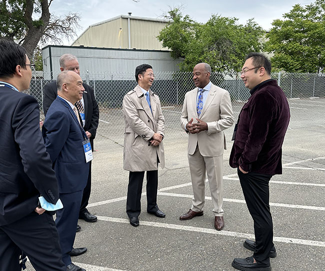 加州首府薩克拉門托市5月4日上午,薩克拉門托市長Darrell Steinberg、薩克拉門托地區(qū)國會(huì)議員Doris Matsui、加州大學(xué)戴維斯分校校長Gary May以及特邀嘉賓中國駐舊金山總領(lǐng)事館總領(lǐng)事張建敏一行、薩克拉門托市駐華代表處首席代表Antonio Yung一行等近兩百名來賓隆重慶祝加州大學(xué)戴維斯分校在薩克拉門托市建設(shè)的科創(chuàng)中心Aggie Square項(xiàng)目達(dá)成首棟樓封頂?shù)睦锍瘫?,美寶集團(tuán)董事局主席徐鵬作為該項(xiàng)目的合作伙伴和特邀嘉賓應(yīng)邀出席慶祝儀式。徐鵬與校長Gary May 和總領(lǐng)事張建敏等交流,表示會(huì)盡力協(xié)助該項(xiàng)目在薩克拉門托市建成一個(gè)類似于4月份于洛杉磯州大揭幕的徐榮祥生物科學(xué)創(chuàng)新中心(洛杉磯生物谷)那樣的鏈接整合各類型大學(xué)、企業(yè)和公共服務(wù)部門的集群式科創(chuàng)中心,大力促進(jìn)當(dāng)?shù)乜萍紕?chuàng)新轉(zhuǎn)化、就業(yè)和經(jīng)濟(jì)發(fā)展。