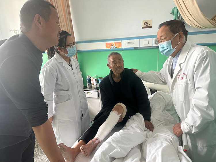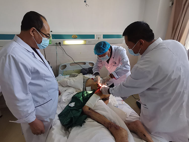 2025年2月20日,應(yīng)張家口市宣化區(qū)人民醫(yī)院急會(huì)診邀請,《中國燒傷創(chuàng)瘍雜志》常務(wù)編委、燒傷創(chuàng)瘍再生醫(yī)療技術(shù)臨床專家趙瑞慶,在該院會(huì)診了三例患者(1例下肢燒傷、1例糖尿病潰瘍、1例左手拇指干性壞死)。事后在醫(yī)辦室與科主任、主管醫(yī)生討論制定了下一步的治療方案,受到當(dāng)?shù)蒯t(yī)務(wù)人員及家屬的熱情稱贊。