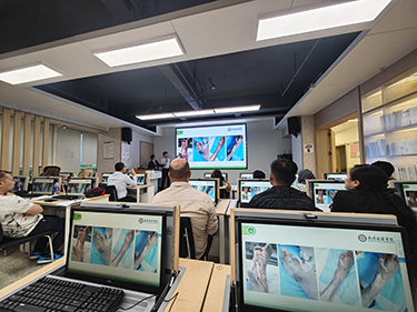 次日上午,代表團(tuán)前往創(chuàng)面修復(fù)科觀摩再生醫(yī)療技術(shù)及多技術(shù)聯(lián)合應(yīng)用治療慢性創(chuàng)面的換藥過程。代表團(tuán)首先觀摩了創(chuàng)面??谱o(hù)士為背部IV期壓瘡患者進(jìn)行負(fù)壓封閉引流的換藥操作,并加深了對應(yīng)用護(hù)理技巧預(yù)防醫(yī)源性壓瘡的理解。隨后,代表團(tuán)協(xié)助創(chuàng)面??谱o(hù)士為下肢血管性潰瘍等慢性創(chuàng)面患者進(jìn)行換藥,通過創(chuàng)面??谱o(hù)士對操作技巧的強(qiáng)調(diào)及講解,代表團(tuán)更加深入的了解了如何根據(jù)患者創(chuàng)面情況選取合適的換藥方式。下午,代表團(tuán)來到了瘢痕修復(fù)科,通過現(xiàn)場學(xué)習(xí)及操作充分了解到了超聲波技術(shù)及推拿技術(shù)在預(yù)防瘢痕產(chǎn)生時(shí)的作用機(jī)制。