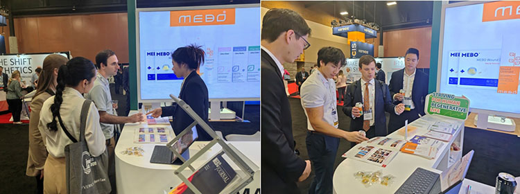 在此次大會上,美寶國際精心打造了展臺,展示了多款燒傷治療產(chǎn)品與最新臨床解決方案。眾多與會者紛紛駐足展臺,了解再生醫(yī)療技術(shù)在治療燒傷方面的優(yōu)勢,并共同討論燒傷治療未來的發(fā)展方向。值得一提的是,目前正在進行濕潤燒傷膏美國FDA臨床試驗中心的醫(yī)生也專程來到展臺,共同探討臨床實操中的問題。除濕潤燒傷膏外,與會者對于預(yù)防瘢痕形成、緩解愈合后皮膚瘙癢等一系列產(chǎn)品也表現(xiàn)出濃厚興趣,認為這對提高患者愈合后的生活質(zhì)量起到了重要作用。