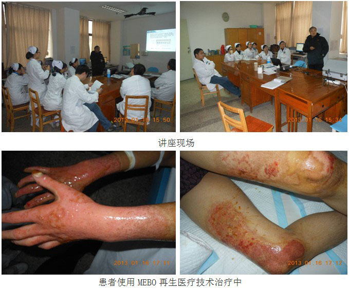 劉莉護(hù)士長熱情接待了金教授,下午三點(diǎn)半在該院住院部十樓辦公室,再生醫(yī)療技術(shù)講座正式開始,科室十五位醫(yī)護(hù)人員們參加了此次講座。金黨軍教授通過電教片展示了燒傷皮膚原位再生醫(yī)療技術(shù)理論依據(jù),規(guī)范換藥細(xì)節(jié),暴露、半暴露和包扎療法的應(yīng)用。金教授還結(jié)合臨床病例圖片,針對不同深度的燒傷創(chuàng)面及各類難愈性創(chuàng)傷、潰瘍創(chuàng)面的規(guī)范化處理方法與技巧、注意事項(xiàng)及燒傷疤痕康復(fù)治療等進(jìn)行了細(xì)致講解。