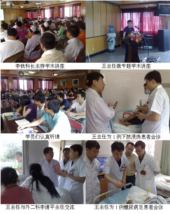 專題學(xué)術(shù)講座于當(dāng)日的下午3:00開始,王洪生主任結(jié)合了大量的臨床病例圖片,針對不同深度的燒傷創(chuàng)面及各類難愈性創(chuàng)傷、潰瘍創(chuàng)面的規(guī)范化處理方法與技巧、注意事項(xiàng)等進(jìn)行了細(xì)致地講解?;顒?dòng)持續(xù)到下午17時(shí)30分才結(jié)束,學(xué)術(shù)講座結(jié)束后,該院醫(yī)務(wù)科主任又邀請王主任為幾例難愈性創(chuàng)瘍創(chuàng)面的患者會(huì)診,在外二科主任李清平副主任醫(yī)師的陪同下,王主任深入外二病區(qū),為在該病區(qū)治療的幾例糖尿病足、褥瘡、下肢潰瘍等患者進(jìn)行了會(huì)診和臨床指導(dǎo)。