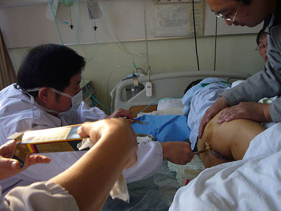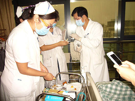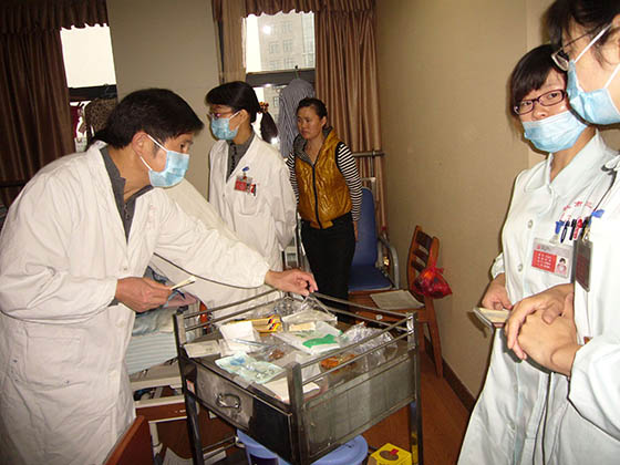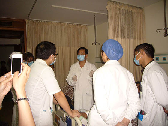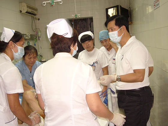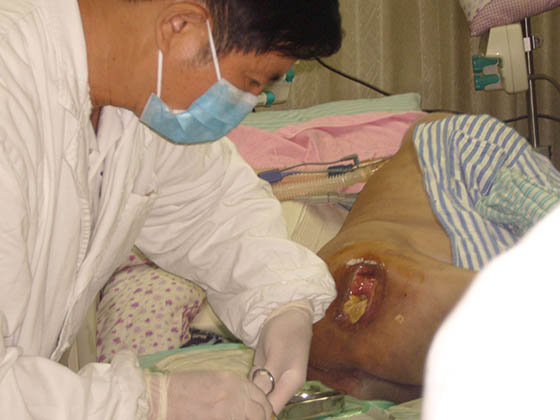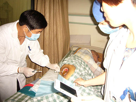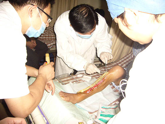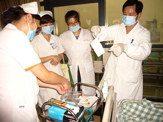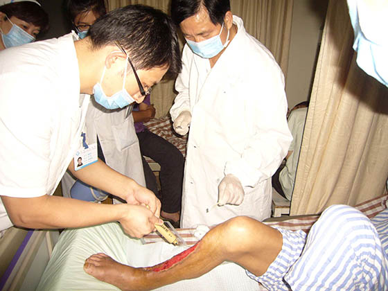 每次在各醫(yī)院培訓(xùn)結(jié)束后,胡教授都不辭辛苦的應(yīng)臨床邀請(qǐng)到醫(yī)院各科室進(jìn)行會(huì)診,親自指導(dǎo)醫(yī)護(hù)人員為病人進(jìn)行換藥治療。期間還分別前往浙江醫(yī)院等多家醫(yī)院進(jìn)行了院內(nèi)的科室培訓(xùn)講座,并現(xiàn)場(chǎng)指導(dǎo)醫(yī)護(hù)人員為病人換藥治療。