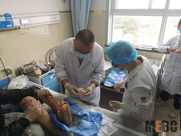 2020年3月10日,應(yīng)孝感市孝南區(qū)東山頭衛(wèi)生院邀請(qǐng),中國(guó)中西醫(yī)結(jié)合學(xué)會(huì)燒傷專業(yè)委員會(huì)副主任委員張強(qiáng)主任到該院會(huì)診了一位高齡低溫燙傷及糖尿病足患者,并現(xiàn)場(chǎng)演示規(guī)范換藥,隨后與科室醫(yī)生交流再生醫(yī)療技術(shù),大家表示收獲良多,對(duì)再生醫(yī)療技術(shù)有了進(jìn)一步的認(rèn)識(shí)!當(dāng)日下午,張強(qiáng)主任又來(lái)到孝南區(qū)三醫(yī)院對(duì)全體醫(yī)護(hù)進(jìn)行技術(shù)培訓(xùn),在科室會(huì)診了一例電火燒傷患者,并與付主任就技術(shù)及科室建設(shè)作了深入交流!