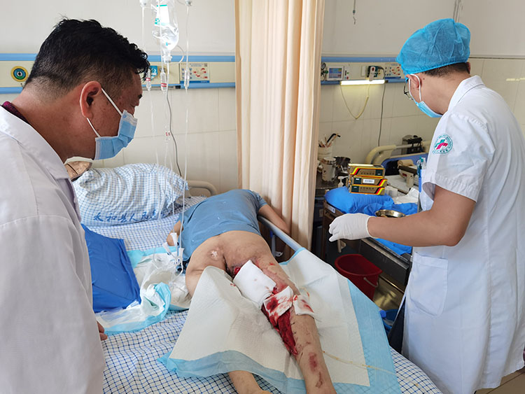 2023年8月8日,享受國務(wù)院特殊津貼專家、中國中西醫(yī)結(jié)合燒傷專業(yè)委員會顧問、中國研究型醫(yī)院學(xué)會創(chuàng)面防治與損傷組織修復(fù)專業(yè)委員會委員、《中國燒傷創(chuàng)瘍雜志》常務(wù)編委、成都市郫都區(qū)人民醫(yī)院燒傷創(chuàng)瘍科學(xué)術(shù)帶頭人付子俊教授,應(yīng)邀來到昭通市彝良縣人民醫(yī)院,對該院相關(guān)科室的醫(yī)護人員進行再生醫(yī)療技術(shù)多學(xué)科規(guī)范化應(yīng)用培訓(xùn)。會后,付子俊教授對多名創(chuàng)瘍患者進行了會診,為醫(yī)護人員展示了規(guī)范化換藥操作示范。