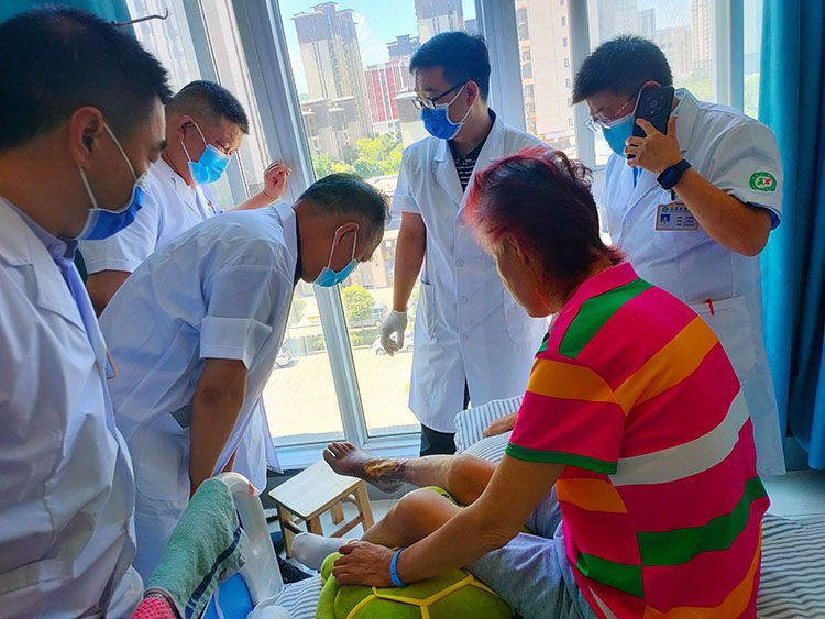 8月9日上午,中國中醫(yī)藥高等教育學(xué)會臨床教育研究會肛腸分會常務(wù)理事、北京中西醫(yī)結(jié)合學(xué)會燒傷專業(yè)委員會副主任委員、北京中醫(yī)藥學(xué)會肛腸專業(yè)委員會委員、《中國燒傷創(chuàng)瘍雜志》常務(wù)編委張勇,應(yīng)遼寧本溪南地醫(yī)院宋主任的邀請,對一例糖尿病足患者進行會診,并就再生醫(yī)療技術(shù)在多種難愈合創(chuàng)面的臨床應(yīng)用及優(yōu)勢與全科醫(yī)護人員進行了深入交流。