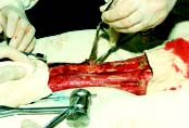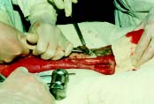 4. 用骨鉆在骨面按間隔1厘米鉆孔,鉆孔深度達髓質(zhì),有微出血。