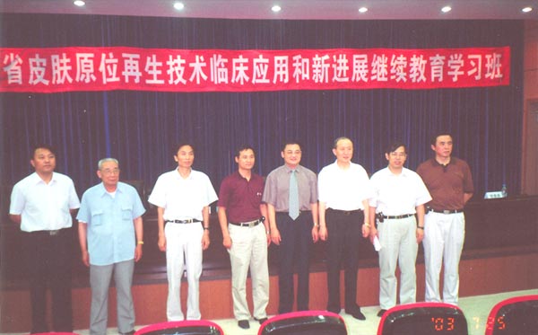 2003年7月25日上午8:30,經(jīng)過積極籌備、認真組織和精心安排,“遼寧省皮膚原位再生技術(shù)臨床應(yīng)用和新進展繼續(xù)教育學(xué)習班”在錦州醫(yī)學(xué)院附屬第一醫(yī)院學(xué)術(shù)報告廳召開。參加本次培訓(xùn)班的學(xué)員有來自黑龍江省、吉林省和遼寧省各醫(yī)院的領(lǐng)導(dǎo)和醫(yī)護人員一百多人,徐榮祥教授的到來給此次活動帶來了非常熱烈的氣氛并充滿了活力。