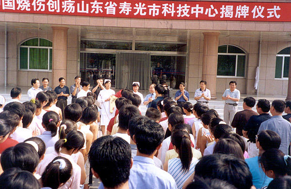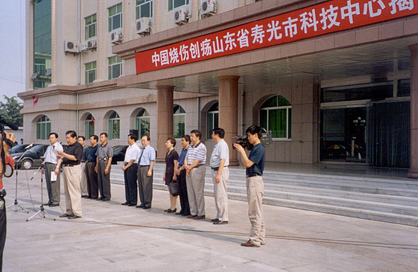 2002年7月10日,又一家中國(guó)燒傷創(chuàng)瘍科技醫(yī)療分中心在聞名全國(guó)的蔬菜生產(chǎn)基地山東省壽光市人民醫(yī)院掛牌成立,這一天,壽光市人民醫(yī)院舉辦了隆重的揭牌儀式。上午8時(shí)18分,由山東省壽光市人民醫(yī)院張獻(xiàn)忠院長(zhǎng)宣布“中國(guó)燒傷創(chuàng)瘍山東省壽光市科技中心揭牌儀式”開始。出席這次揭牌儀式的有:壽光市副市長(zhǎng)劉建安、壽光市衛(wèi)生局局長(zhǎng)鄭道明、中國(guó)燒傷創(chuàng)瘍科技中心副主任肖摩、辦公室主任劉曉梅、山東區(qū)域經(jīng)理路梅。副市長(zhǎng)劉建安、衛(wèi)生局局長(zhǎng)鄭道明、中國(guó)燒傷創(chuàng)瘍科技中心副主任肖摩、壽光市人民醫(yī)院外科主任李建國(guó)分別代表發(fā)言。
